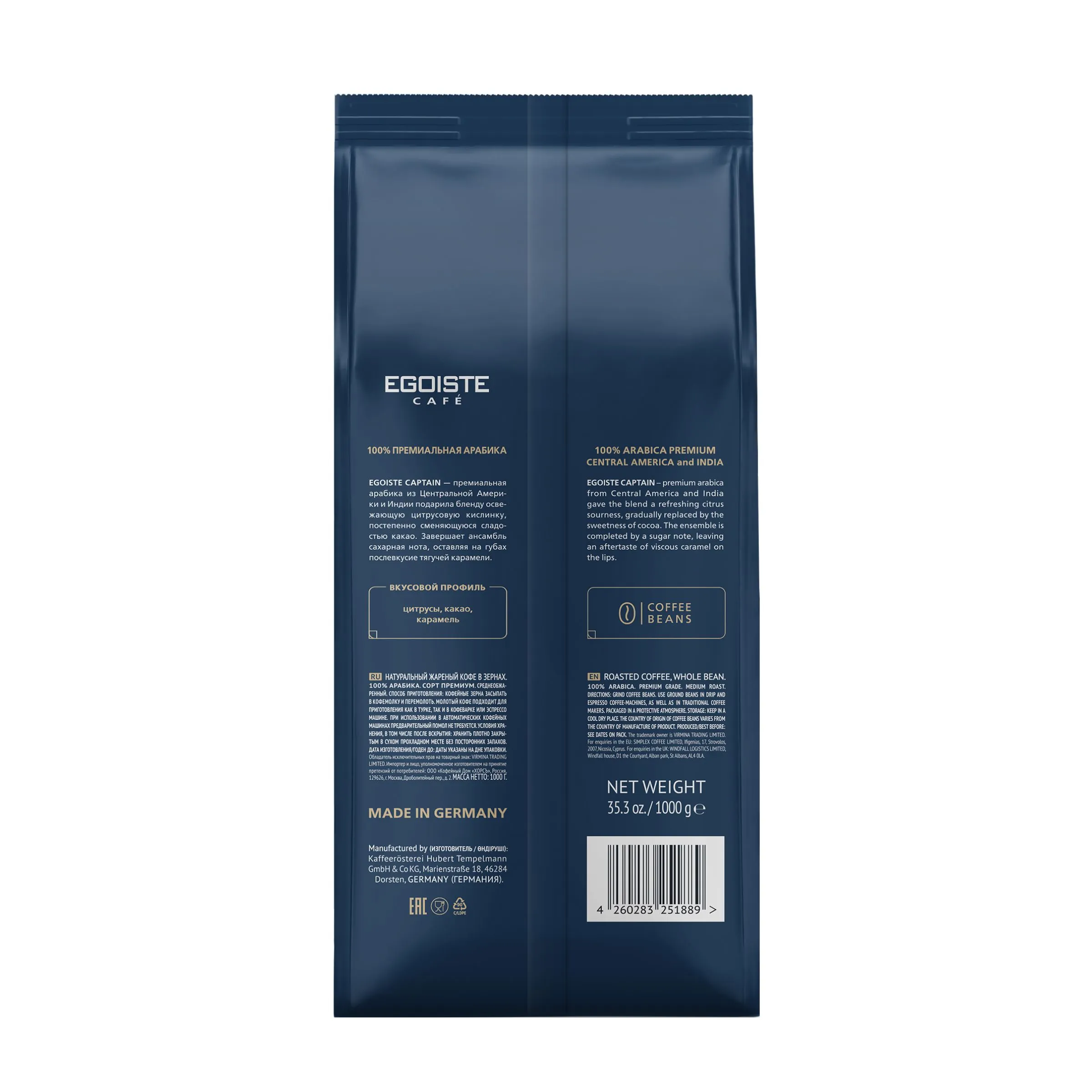 EGOISTE Captain 1 кг — натуральный зерновой кофе из 100% премиальной арабики.