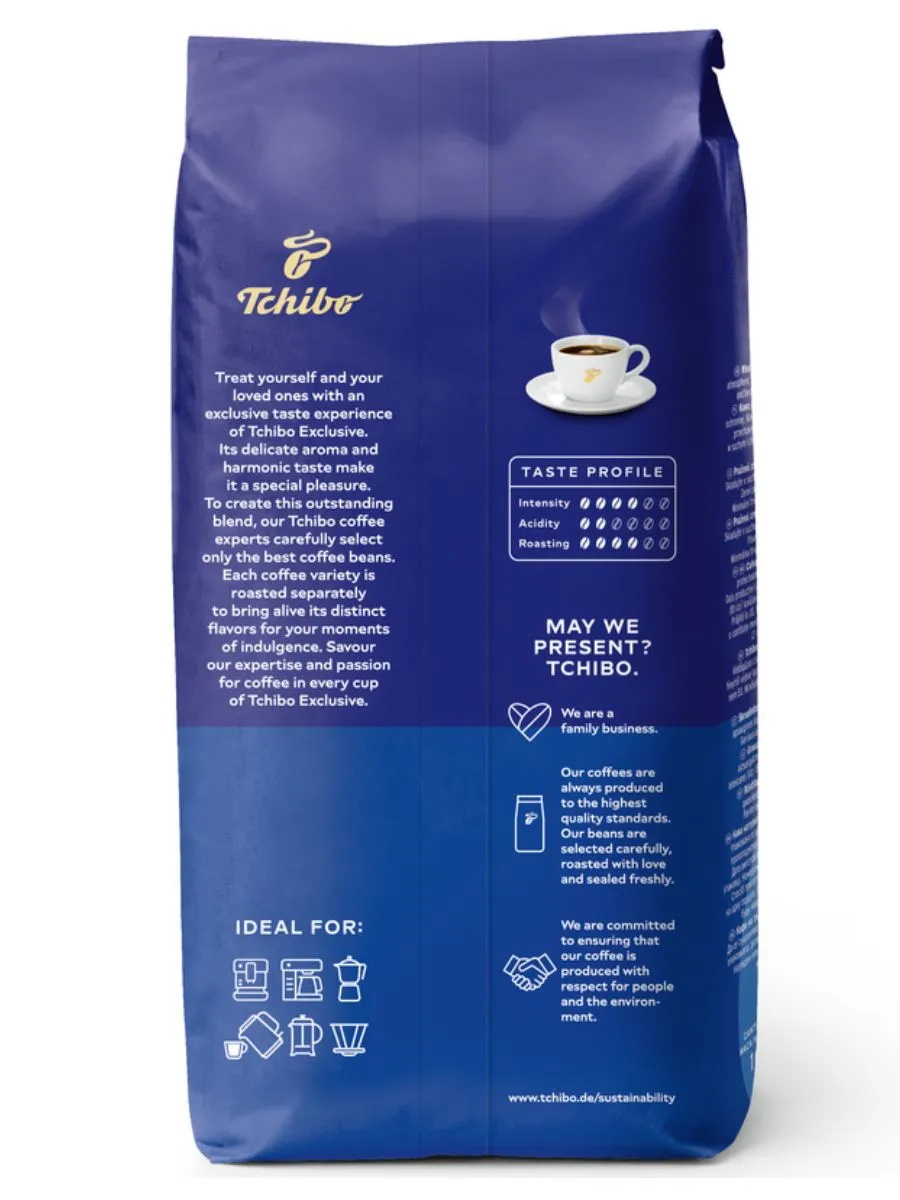 Tchibo Exclusive — восхитительный кофе с тонким ароматом и гармоничным вкусом, сбалансированный, с ореховым оттенком. Для создания этой бесподобной смеси специалисты Tchibo отбирают только лучшие зерна арабики из Южной Америки и добавляют несколько выразительных зерен робусты из Азии.